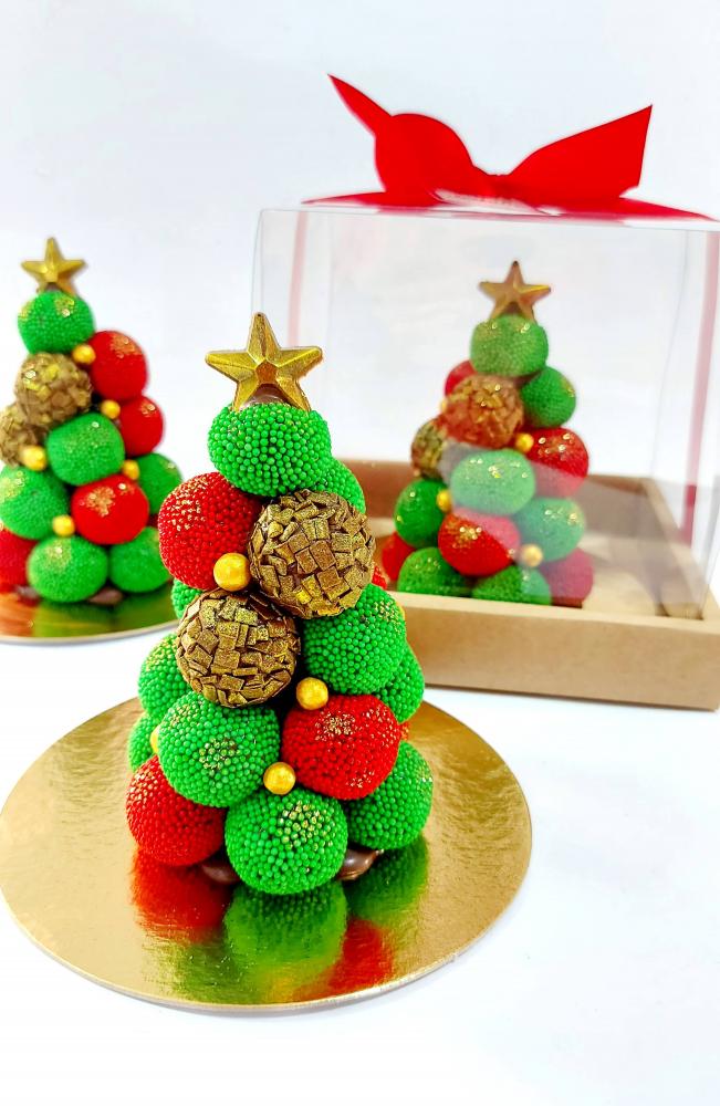 Linda e deliciosa árvore de Natal com APROX. 19 brigadeiros de chocolate gourmet decorados com tema Natal.