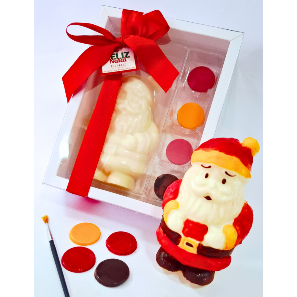 - Decore o Papai Noel com a aquarela com 3 cores de chocolate para derreter e pintar.